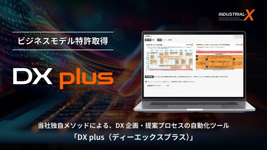【プレスリリース】【ビジネスモデル特許登録】INDUSTRIAL-X独自メソッドにより、DX企画・提案プロセスの自動化ツール「DX plus(ディーエックスプラス)」