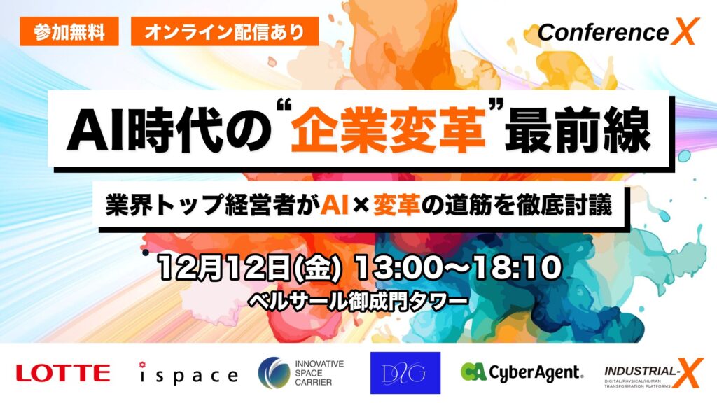 【プレスリリース】【累計登録者5,000名突破!】ロッテ玉塚氏、元LINE砂金氏、だかぼく斉藤氏登壇決定!業界トップがAI時代”企業変革”を徹底討論―「Conference X 2025」未来を創る業界トップ経営者が集う!―